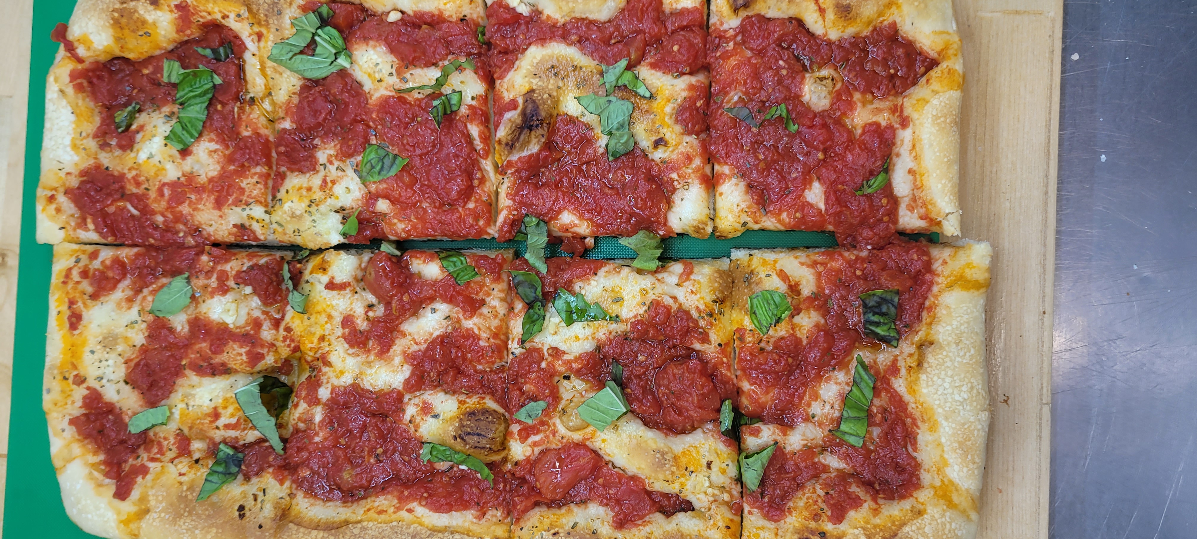 Homemade focaccia pizza and sandwiches